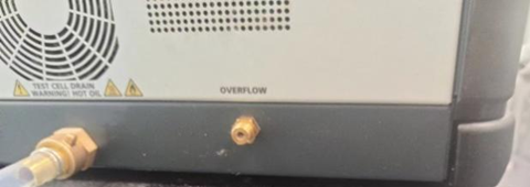 為保證試驗(yàn)結(jié)果準(zhǔn)確,每次試驗(yàn)都需要清洗電極,用測試油沖洗2-3次,每次測試結(jié)束后也會自動排油(可設(shè)置,也可手動排油)。排油口需平放置桌面,避免排油時油液倒流使油從溢油口溢出。